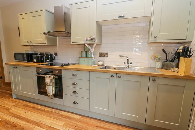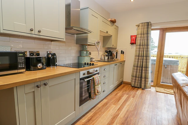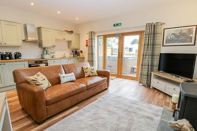 After enjoying the open countryside views, be welcomed into a well-presented property, housing all the essentials for a week-long stay with your partner. Enjoy your evenings within the open-plan living room, where you can rustle up a home-cooked meal within the amply equipped kitchen, before cosying up on the leather sofa, which rests in front of the Smart TV with Freeview.