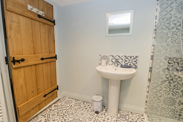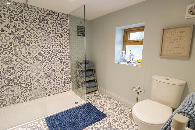 In here, you will also find a warming electric stove, which is perfect for those chilly winter months. The interior is completed by a charming double bedroom, which is benefitted by a double bed and a delightful interior design, as well as a stylish shower room with a wonderful retro tile design to enjoy.