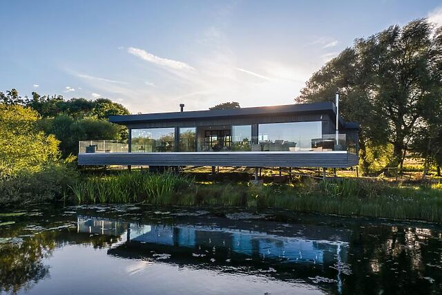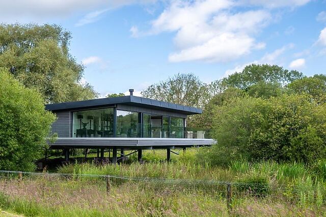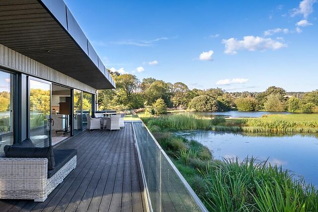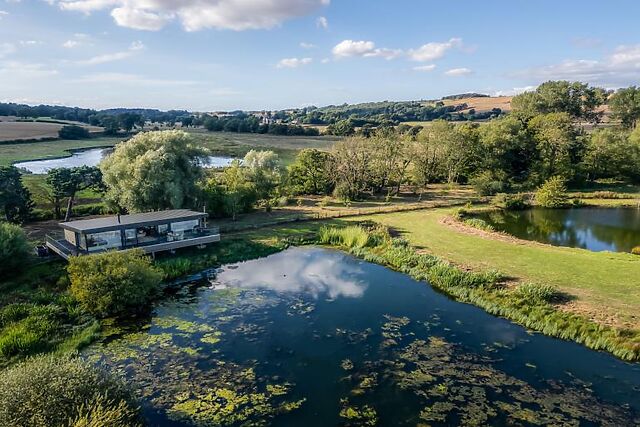 Nestled in a timeless estate on the edge of the Yorkshire Dales, this enchanting lodge offers a lakeside retreat like no other. Perfectly positioned to take in the tranquil charm of its surroundings, the lodge provides panoramic views of a private lake from its spacious glass-fronted living space and elevated veranda.