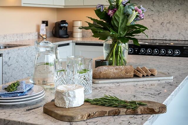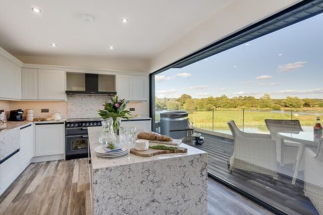 - High-spec kitchen featuring premium appliances. - Comfortable lounge with sofas and a wood burner for cosy evenings.