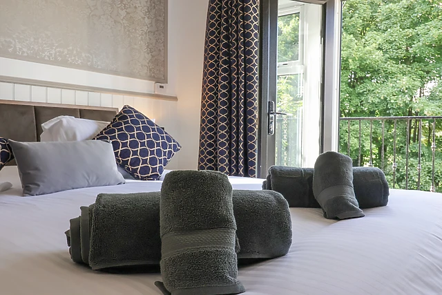 this space is ideal for reclining in the sunshine with a glass of your favourite beverage or taking an indulgent soak in the bubbling hot tub. As the evening wears on, retire to the second-floor super-king-size, where you will find a second balcony with canal views, perfect for morning coffee as you plan the day ahead of you, and a bathroom with wet room shower and beautiful roll-top copper bath with gold features.