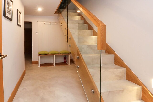 A sleek shower room with a walk-in shower, basin, heated towel rail and WC completes the lower level, which is perfect for getting ready in the mornings. Upstairs, the spacious open-plan living area invites you to gather together.