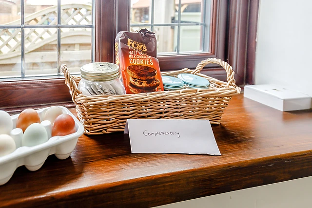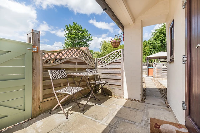 To the rear, there is an enclosed and sheltered patio complete with its own private bubbling hot tub; a superb way to relax and unwind with a glass of wine and watch the sun go down! Guests also have access to one acre of fields, with a pond and seating.