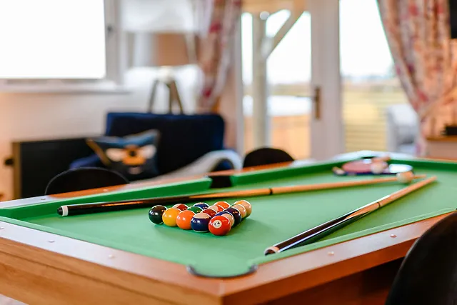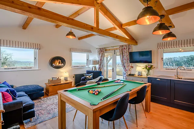 After dinner, unwind with a game of snooker or ping-pong on the convertible dining table, or simply relax on the sofa by the bioethanol fire.