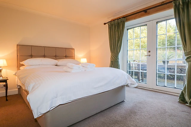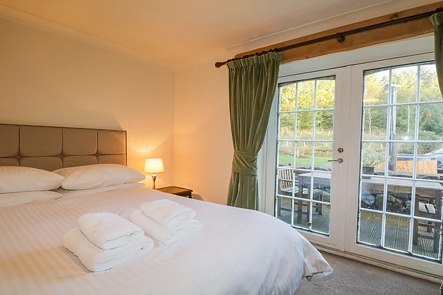 With all rooms being on the ground floor, guests have easy access to a family bathroom, with a bath and shower over. The property boasts a large king-size bedroom with a lovely feature stone wall, and has French doors leading out to a decking area and has a table and chairs provided, as well as a large Lazy Spa Hot Tub which takes 2-3 hours to get to temperature.