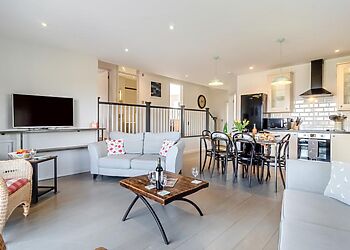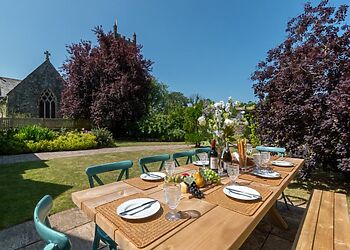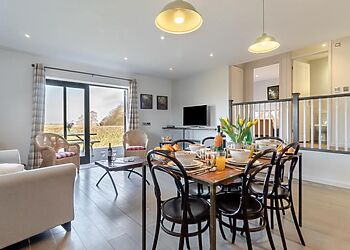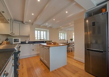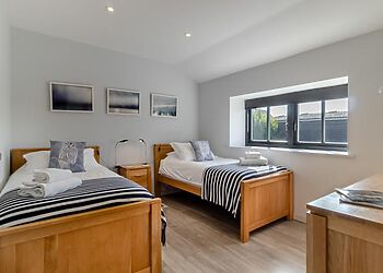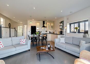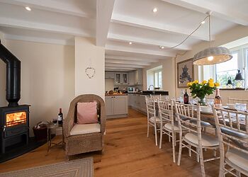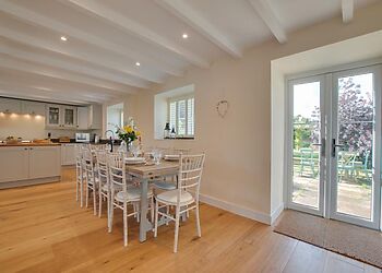 Barton Farm in West Down, Devon, is a stunning period barn conversion that sleeps up to eight people. This spacious property boasts four bedrooms and two bathrooms, making it ideal for families or groups of friends.