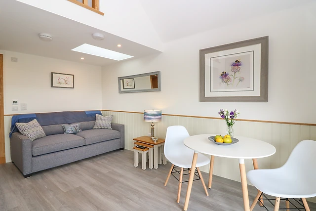 The studio comfortably sleeps two, making it an ideal escape for couples. Inside, you'll find a cosy and elegantly furnished space, complete with a luxurious hot tub to unwind in after a day of exploring.