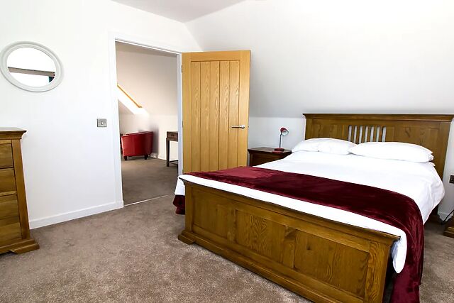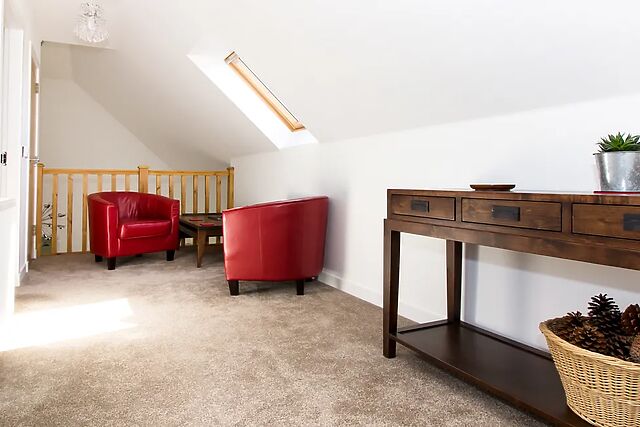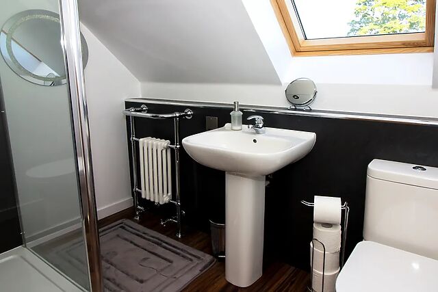 Take the stairs and you will be welcomed by one double bedroom, benefiting from a Velux window that invites views of the countryside into the property. This floor also houses a beautiful mezzanine and a contemporary shower room complete with quality facilities.