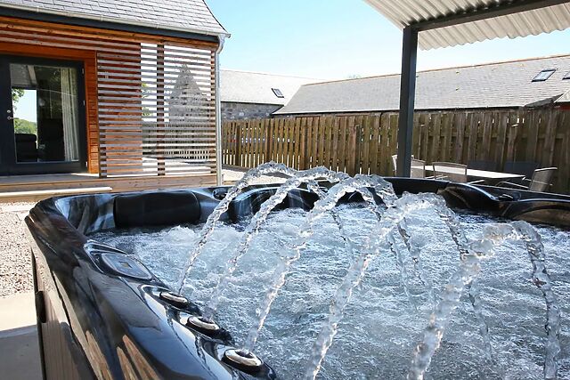 Throughout the day or during the evening, you can dish up those appetising meals in the fitted kitchen and cosy up in the open plan sitting area elevated by a high ceiling. Patio doors open out to the enclosed garden, boasting a hot tub, where you can enjoy a refreshing drink whilst being at one with the pleasant scenery.