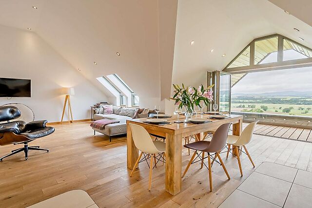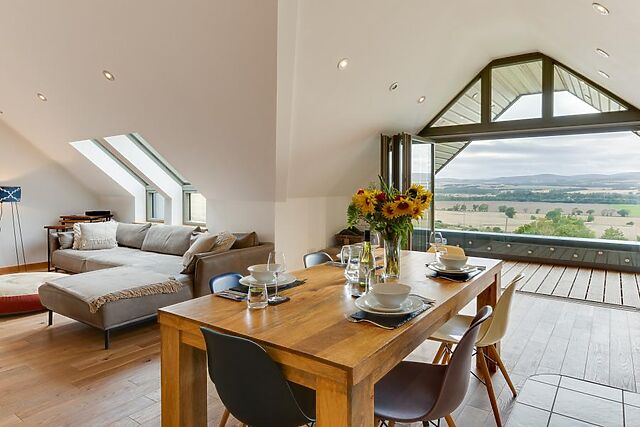 Escape to a luxurious retreat nestled in the heart of the scenic Angus countryside, with Glen Clova offering a serene backdrop for your getaway. This exquisite steading conversion sleeps up to 4 guests, providing a sumptuous escape with two super-king-size en-suite bedrooms, each boasting bi-fold doors that open onto a private garden area, immersing you in the expansive countryside views.