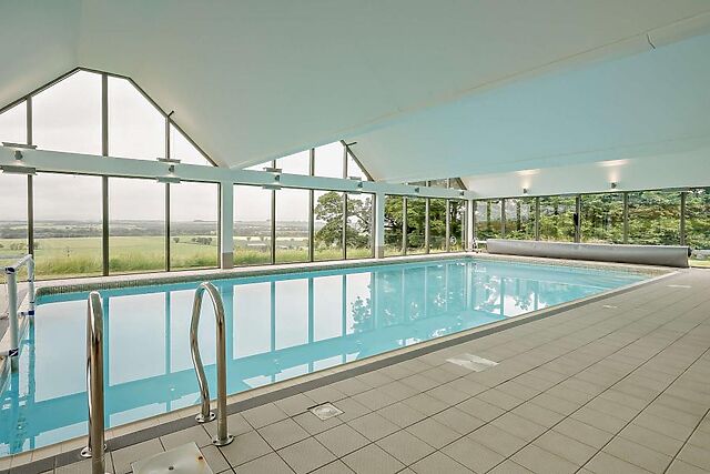 Indulge in the shared on-site facilities, including an indoor heated swimming pool, jacuzzi, and gym. For the little ones, a children's play area with a zip wire and tennis court is available.
