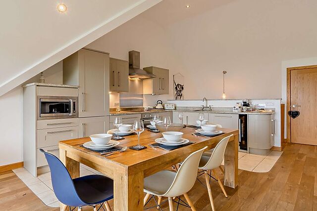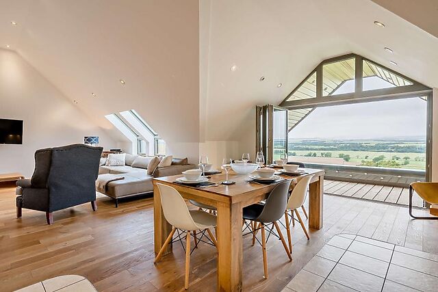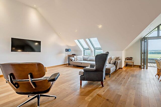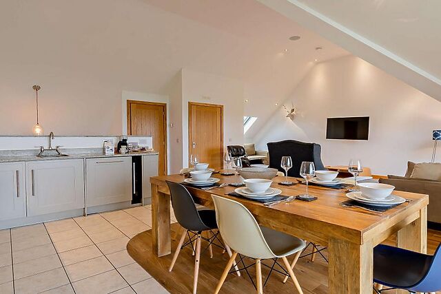 Accommodating up to 4 guests, this exquisite cottage boasts two super-king-size en-suite bedrooms, each with bi-fold doors that reveal a private garden area. The property is designed with sophistication, featuring a heated glass-fronted balcony, a modern open-plan living space, and a hot tub for ultimate relaxation.