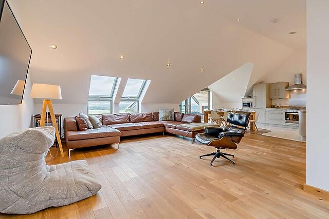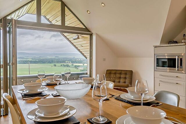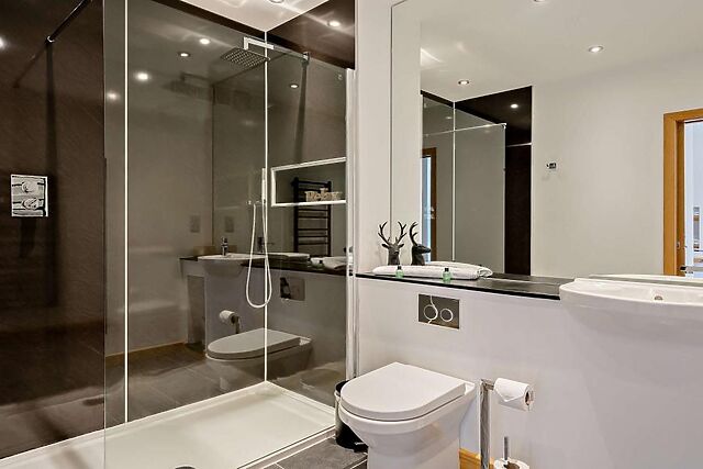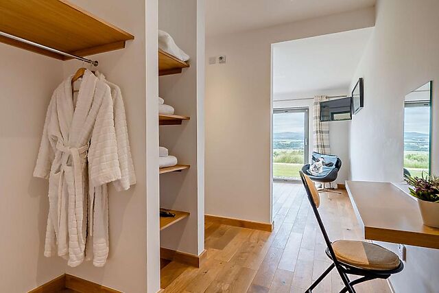 Accommodation comprises two spacious super-king en-suite bedrooms, each with bi-fold doors that open to a private garden, blending the indoor elegance with the stunning outdoor scenery. The property boasts a heated glass-fronted balcony, offering panoramic views and a perfect spot for relaxation.