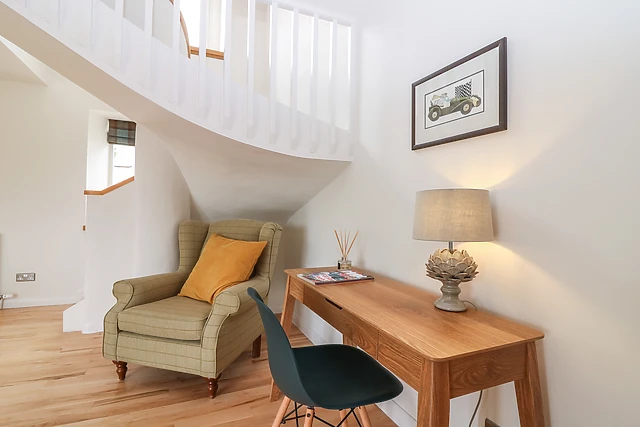The cottage comfortably sleeps up to 6 guests across three tastefully decorated bedrooms, with one featuring an en-suite shower room and a private balcony for sipping your morning coffee amidst the fresh air. Designed with accessibility in mind, it includes ground-floor accommodation and a bedroom for those with limited mobility.