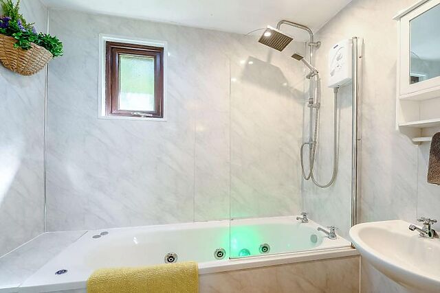 - One twin bedroom. - Spa-style bathroom with a rainfall shower over the bath.
