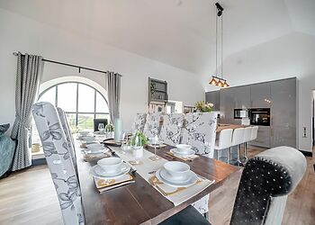 This cosy lodge offers stunning views of the Isle of Arran and Ailsa Craig. It’s perfect for walkers and cyclists, with nearby coastal and countryside trails. Inside, there's an open-plan layout with a comfy sofa, well-equipped kitchen and French doors opening to a deck with a hot tub.