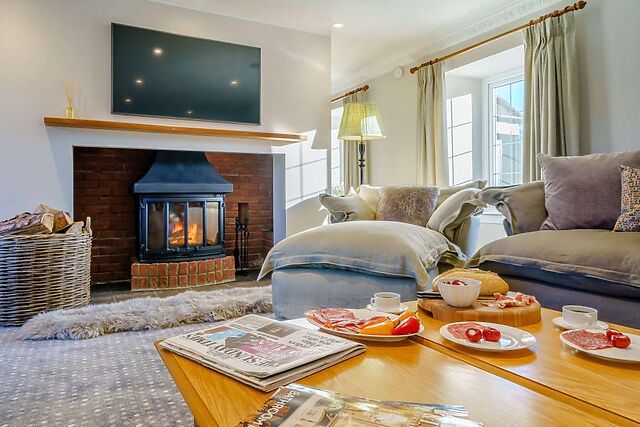 The cosy snug and sunroom are the ideal places to relax and enjoy a good book. The sumptuous lounge with comfy, deep sofas, Smart TV, built-in Sonos system, and a wood burner for those cooler evenings, is a great space to relax and unwind after a day out exploring.