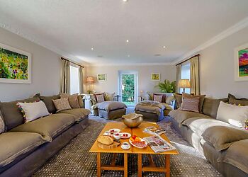 There is also the option of four stunning doubles and one twin bedrooms, some with en-suites and TVs, each with beautiful décor and tasteful furniture, and some allowing for captivating seaside views. Outside, make the most of the sunshine and the salty air, dining alfresco or kicking back in the hammock and outdoor sofas, before snuggling up beside the fire pit and enjoying a glass of your favourite beverage.