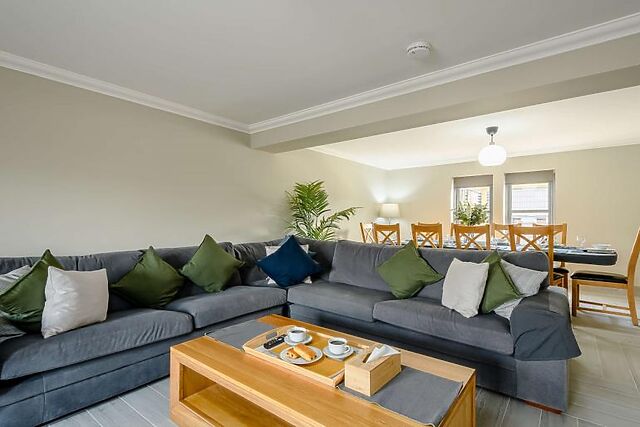 Yes, in addition to the main bedrooms, the accommodation offers a sofa bed in the lounge, which can sleep 2 additional guests, providing flexibility for larger groups or families.