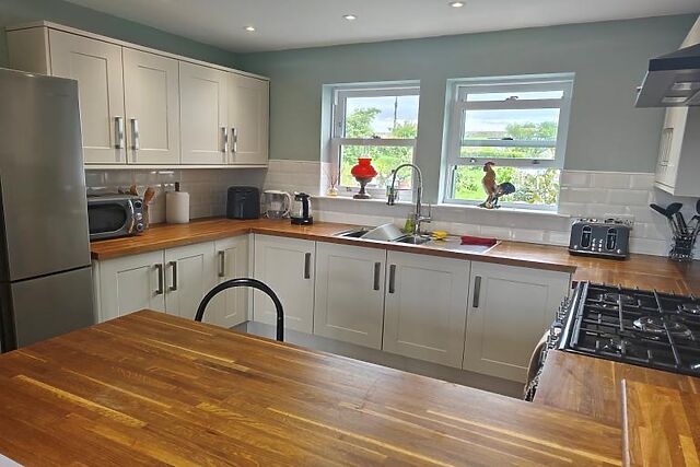 The separate kitchen/diner has all the equipment and worktop space needed to whip up hearty feasts for the group, and is a lovely spot to come together for family mealtimes. A handy utility room completes the ground floor.