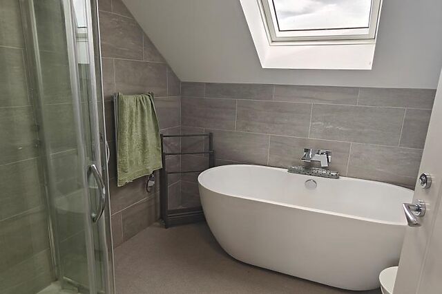 Upstairs, two spacious bedrooms with countryside views await, both of which have ample storage for all your holiday essentials. A stylish bathroom with an indulgent, free-standing bath rounds off the first floor.