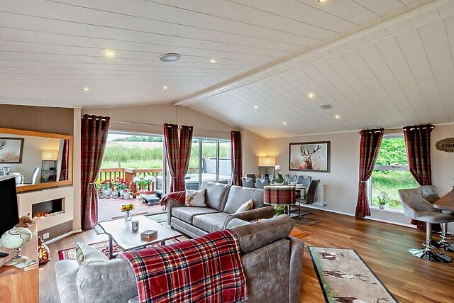 Head out to the magnificent Ale Water Valley, 9.5 miles from the lodge, to follow more scenic footpaths, go horse riding or indulge in a little golf or fishing. Make your way into this dog-friendly, detached lodge to find yourselves in a bright and airy open-plan lounge/kitchen/diner, with views out across your undulating surroundings.