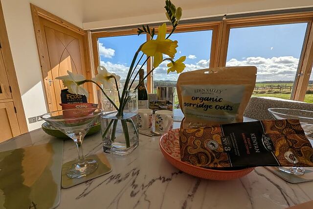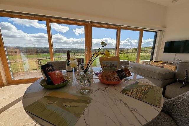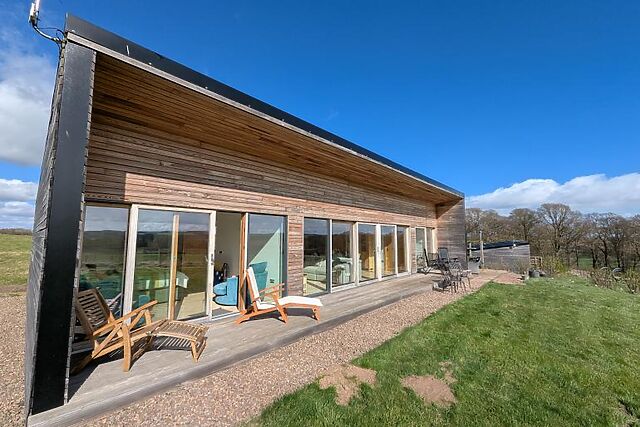 Welcome to Tweed Hideaway, a contemporary two-bedroom chalet located in the heart of an organic farm in the Scottish Borders. This cosy retreat is perfect for a relaxing getaway, offering superb views over the Eden and Tweed Valleys to the Cheviot Hills.