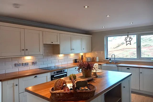 Step into the entrance hall, kick off walking boots, hang up your coats and pass along the hallway to enter the spacious open-plan kitchen/diner/family area that boasts beautiful views of the surrounding countryside from every window and through the patio doors. The kitchen has all the appliances necessary to cook up a storm and a large dining area where you can savour memorable meals together.