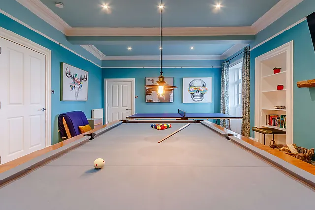 Immerse yourself in the charm of the countryside on a 400-acre working arable farm. The property provides a plethora of amenities, including a games room with pool and table tennis, ensuring entertainment for all ages.