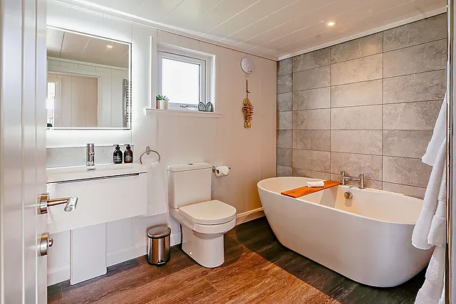 With two chic bathrooms, including a free-standing bath and a walk-in double shower, comfort is paramount. The lodge's proximity to the Fife Coastal Path and sandy beaches adds to its charm, making it an idyllic getaway for both families and friends.