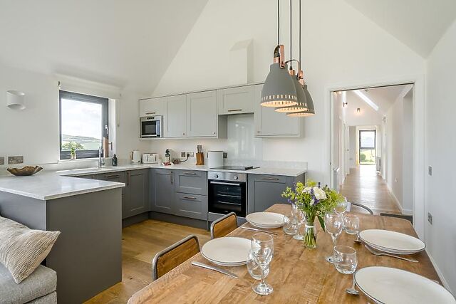 Settle in with a film on the Smart TV or connect to the Bluetooth speaker. The sleek, contemporary kitchen is fully equipped for whipping up everything from casual breakfasts to celebratory dinners.