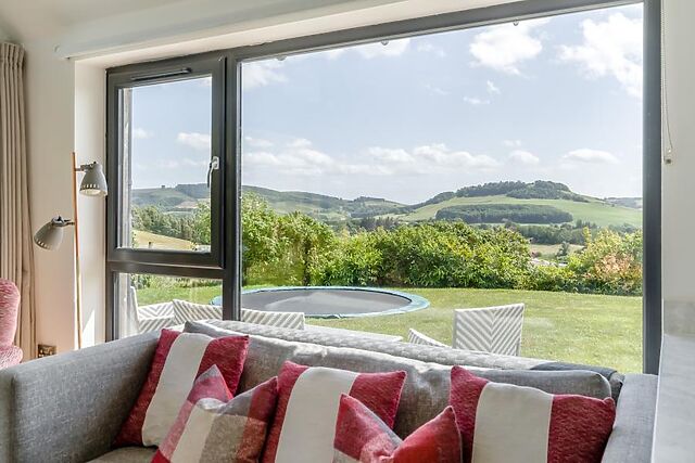 Follow the bright hallway to two spacious bedrooms, each with super-king-size zip-and-link beds (which can be made up as twins on request) and their own Smart TVs. Both rooms have floor-to-ceiling windows, framing the surrounding hills and allowing you to wake up to the sights and sounds of nature.