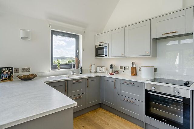 Perched in a peaceful hillside setting with sweeping views of the Fife countryside, this bright, architecturally designed modern Scottish longhouse is the perfect base for a getaway with family or friends. The charming town of Newburgh (2 miles) has all your essentials and is home to Lindores Abbey Distillery, where you can take a guided tour and discover Scotland’s whisky-making heritage.