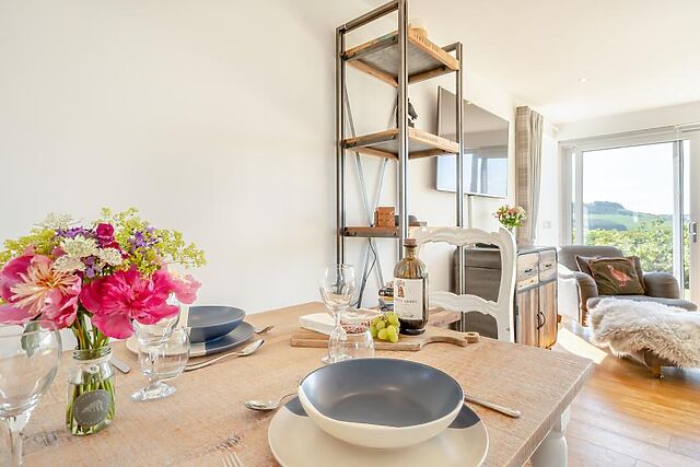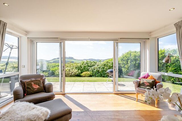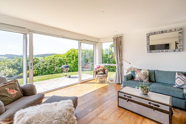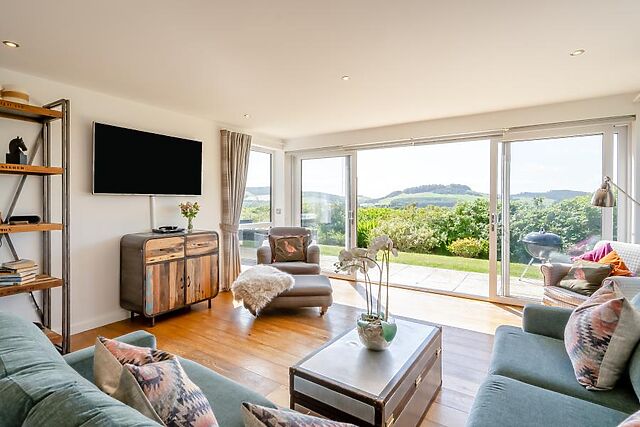 With a Smart TV and floor-to-ceiling picture window boasting breathtaking views of the surrounding hills, it's a wonderful place to relax and come together. French doors open straight onto the garden and hot tub, making indoor/outdoor living a breeze.