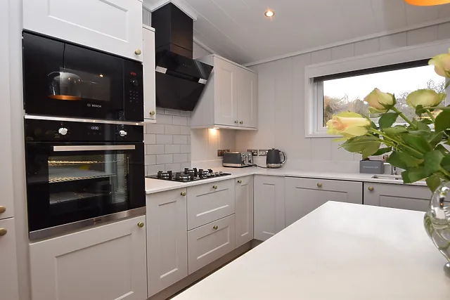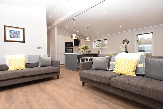 Sleeping up to 4 guests in sublime comfort, the lodge boasts two super-king-size zip-and-link bedrooms, each with its own en-suite and Smart TV.
