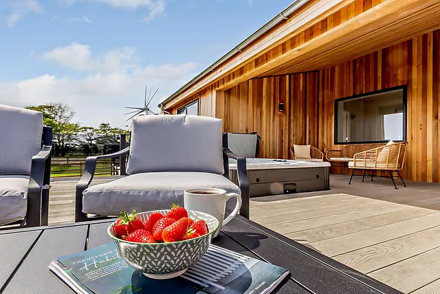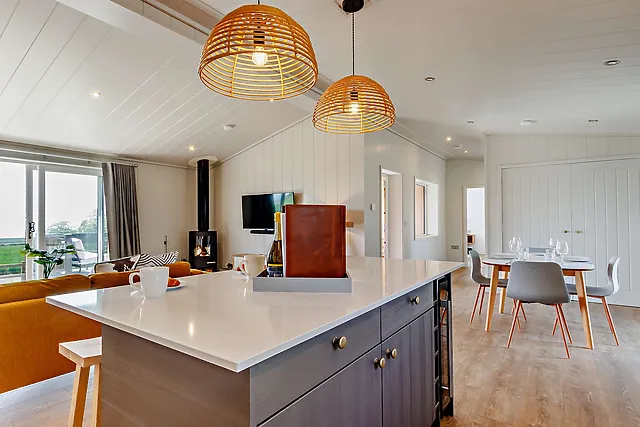 Inside, cosy up in front of the wood burner or enjoy the modern comforts of the Smart TVs and Bluetooth soundbar. The well-appointed kitchen and elegant dining area are perfect for creating and enjoying memorable meals.