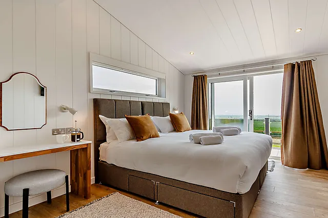 The accommodation boasts two luxurious super-king-size zip-and-link bedrooms, which can be set up as twins upon request, each accompanied by an en-suite, ensuring privacy and convenience for all guests.