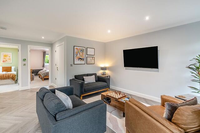 Completing the accommodation is a sleek, contemporary bathroom. Outside, the private garden is a haven for outdoor dining.