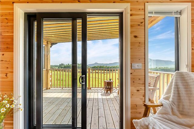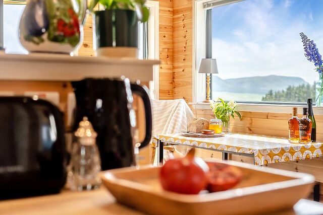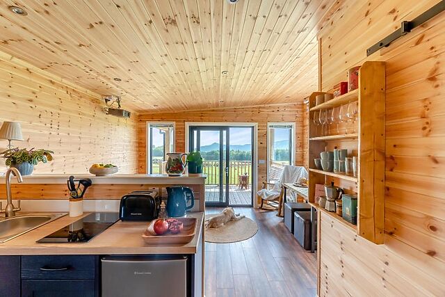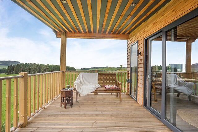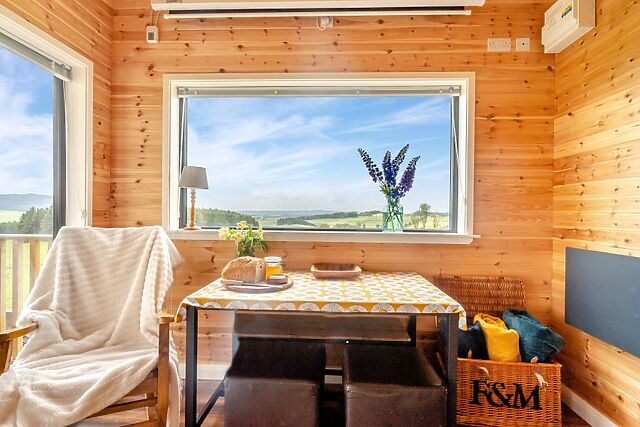 Step inside this delightful, bespoke built, dog friendly lodge sleeping four guests, nestled in an idyllic elevated countryside position with wonderful views towards the Lomond and Falkland Hills. Relax on the comfortable sofas in the open-plan living area and admire the splendid views or watch a movie on the cinema screen and projector with bluetooth connectivity and Amazon firestick.