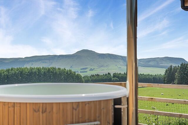 Venturing outside, there is a decked patio with seating area to enjoy al fresco dining or lazy evening star gazing with incredible views to enjoy. There is also a fantastic, woodfired, private hot tub to relax and unwind in whilst admiring the beautiful scenery.