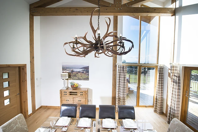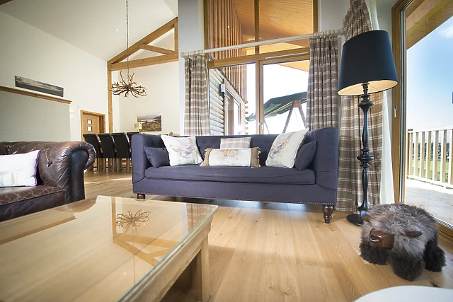 Be welcomed by plenty of off-road parking, before travelling through your outdoor space, the perfect setting for alfresco mealtimes, relaxing in the sauna, and spoiling yourself with a dip in the hot tub. Head indoors to be greeted by the open-plan living space, where you can prepare meals, dine as an eight, socialise, and unwind, with plenty of plush seating to sink into after a day of adventure.