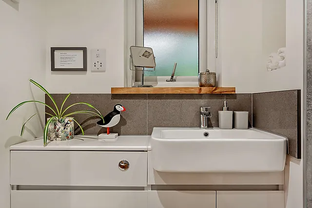 The cabin comfortably sleeps two guests in a cosy double bedroom, with the option to accommodate an additional guest on a sofa bed in the lounge.