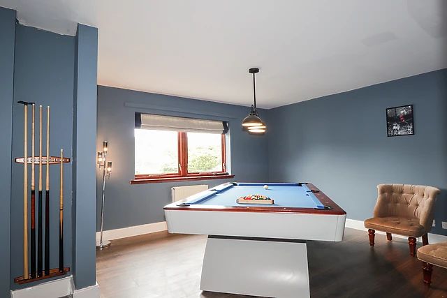 Challenge each other to a game of billiards or take the evening outside as you sit at the furniture and enjoy a warm night. The first bedroom lies downstairs and offers a king-size bed serviced by a shower room, ideal for those guests with limited mobility.