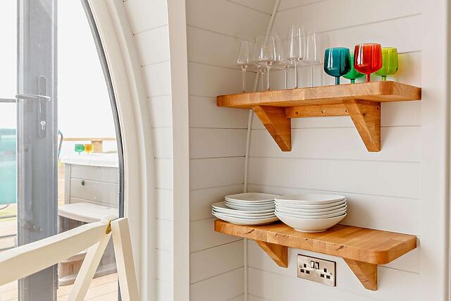 A well-appointed shower room caters to your needs. The open-plan living space, complete with a Smart TV and Bluetooth speaker, is designed to maximize the stunning countryside views.