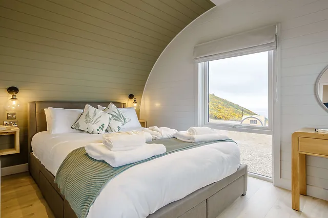 Yes, the accommodation features a luxurious hot tub on the decking area, where guests can relax and enjoy the stunning sea views while sipping on a glass of prosecco.