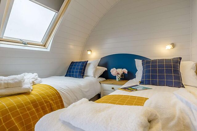 This modern lodge accommodates up to 4 guests in stylish comfort, featuring two well-appointed bedrooms and a sleek shower room.