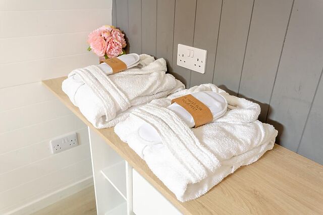 Outside, the enclosed patio area has garden furniture where you can sit and enjoy an evening tipple underneath the starry sky, alongside a bubbling hot tub where you can soak away the day. You will also have access to the shared on-site sauna and BBQ house.