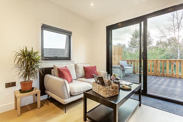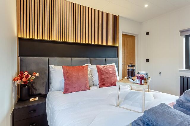 This sleek setup is perfect for couples who want to unwind on the sofa and catch up on the day's events or rustle up a Scottish stew in the stylish black kitchen. In the evening, snuggle into the double bed where modern furnishings, plush bedding and wood panel walls create a cosy atmosphere.