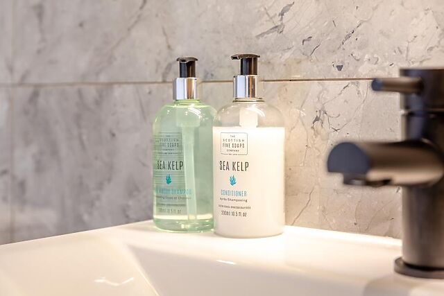 In the next room, the double bed promises restful nights with its plush bedding, tactile textures, and wooden panelling that creates a snug retreat. A rainfall shower in the chic en-suite sets the tone for energising mornings before stepping out to explore.