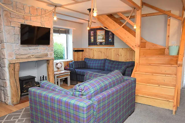 Indulge in the comfort of the conservatory, or unwind by the wood burning stove in the lounge. The cottage retains its original charm with a narrow stairway leading to the upper bedrooms, adding to its quirky character.